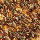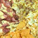 Molho de tomate artesanal, mussarela, picanha, cheddar, molho de pimenta, orégano e Doritos.