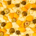 Molho de tomate , Mussarela, Lombo Canadense, , Abacaxi, Péssego, figo e Orégano.