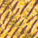 Molho de tomate, mussarela, picanha levemente grelhada ao molho barbecue e orégano.